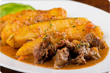 Step 12 - Matooke can also be served with beef or chicken stew or peanut sauce prepared in a traditional way using banana leaves "Oluwombo"